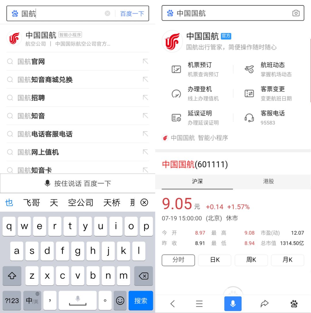 國航升級到智能小程序后,用戶可以通過搜素引擎快速進入其希望獲得的服務,對于用戶的使用體驗有了明顯的提升。尤其是第一次的使用體驗對于低頻用戶來說非常重要,往往直接影響到旅客心中國航的品牌形象。正是百度智能小程序這種快速訪問和便捷使用的友好體驗能夠讓用戶更有可能轉化為品牌的忠實用戶。