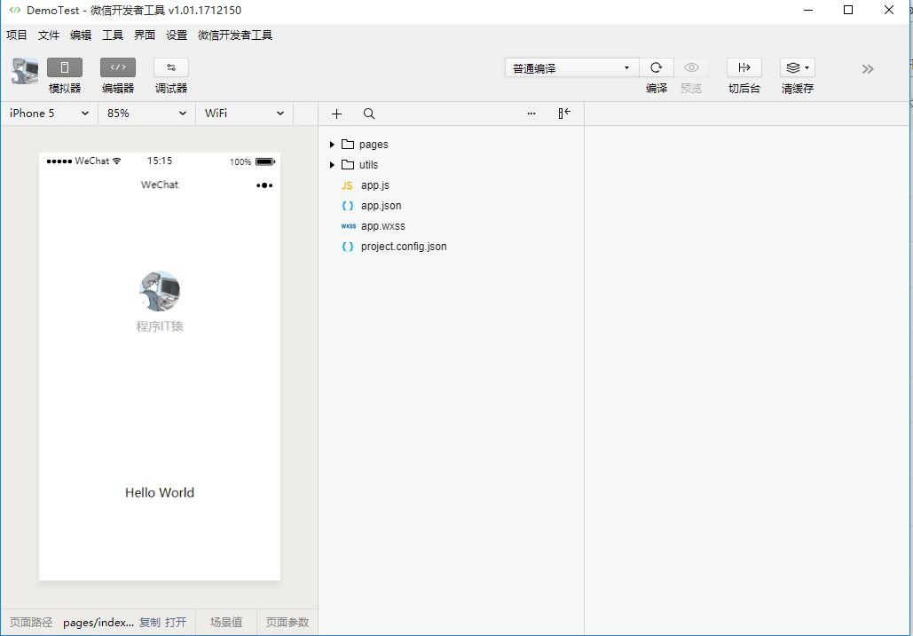 點擊確定,第一個小程序"Hello World"已經可以運行了,簡不簡單哈!