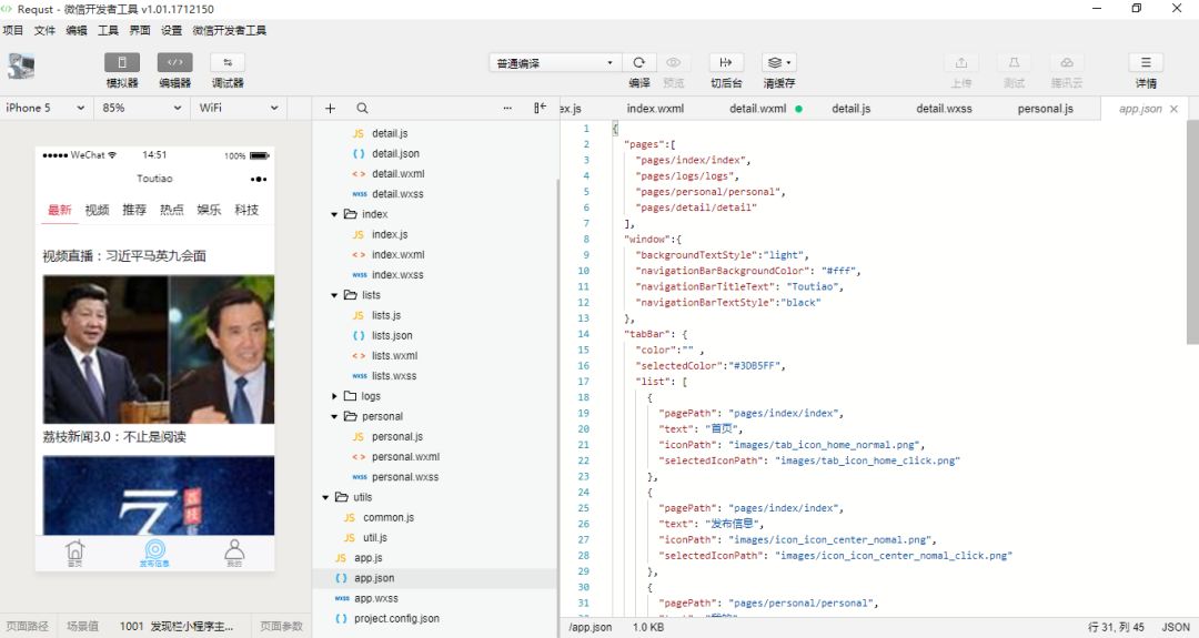 除了以上頁面的三大構成,還有項目的根目錄還有一個 app.json 和 project.config.json 。
