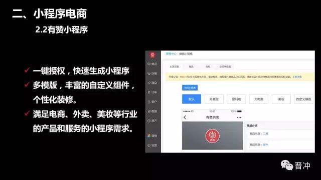 今天主要給大家分享下有贊小程序商城的運營,主要為四個部分:1、小程序解析;2、小程序電商;3、運營技巧;4、案例。