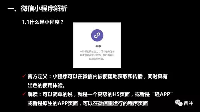 官方定義:小程序可以在微信內被便捷地獲取和傳播,同時具有出色的使用體驗。