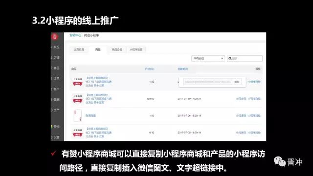 有贊小程序商城可以直接復制小程序商城和產品的小程序訪問路徑,直接復制插入微信圖文、文字超鏈接中。