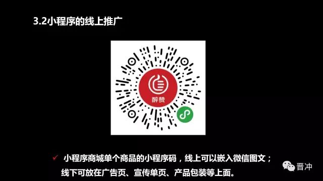 小程序商城單個商品的小程序碼,線上可以嵌入微信圖文;線下可放在廣告頁、宣傳單頁、產品包裝等上面。