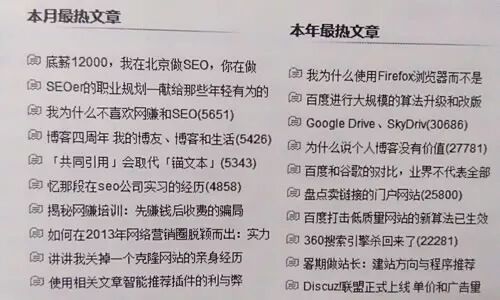 每個CMS 系統都有熱門文章點擊插件,我們可以把大多數文章按月、按年、按欄目、按評論量統一列出來,如下圖部分截圖舉例: