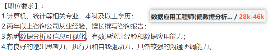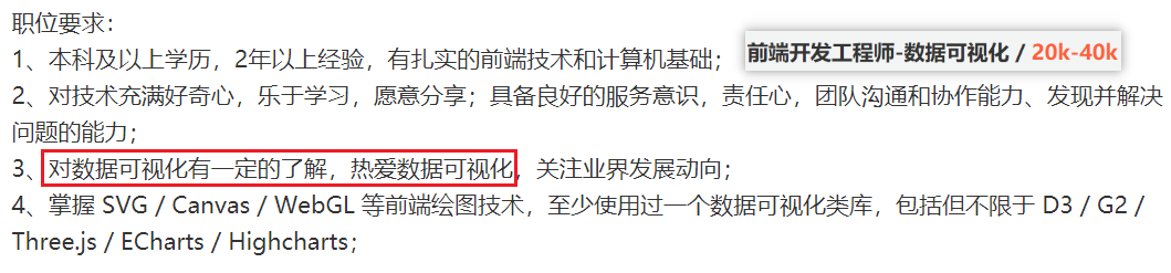 字節跳動、騰訊等大廠在招聘明確要求應聘者應掌握數據可視化,開出的月薪更是達到了20k+到40k+。