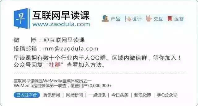 歡迎投稿到早讀課,投稿郵箱:mm@zaodula.com文章底部可以評論留言啦,歡迎大家贊同質疑或吐槽。積極留言的同學,注意關注小編的回復,不定期送互聯網暢銷書以感謝你們的支持,么么噠!